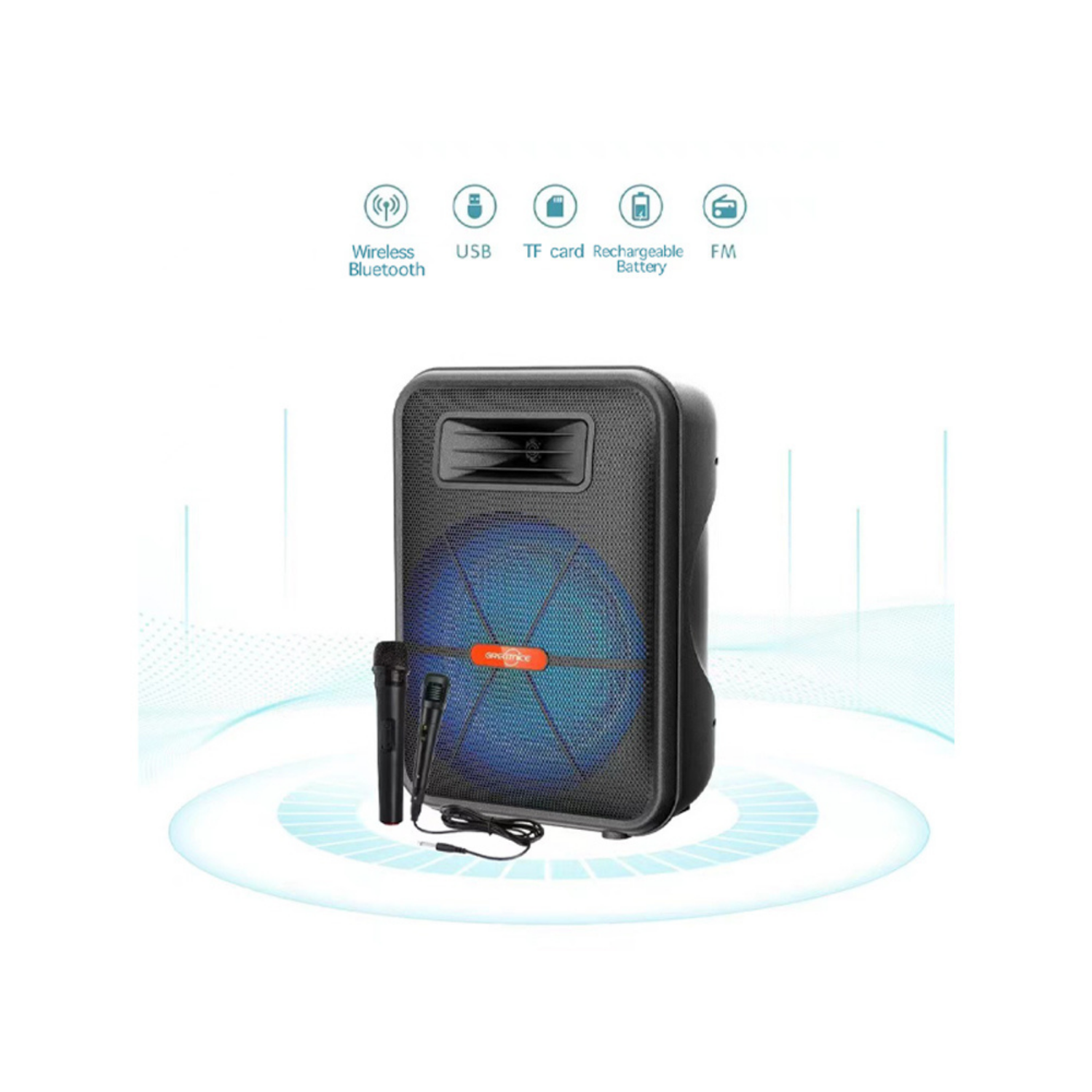 Işıklandırma: Hoparlörün üzerinde bulunan ışıklar müzikle senkronize olarak yanar.